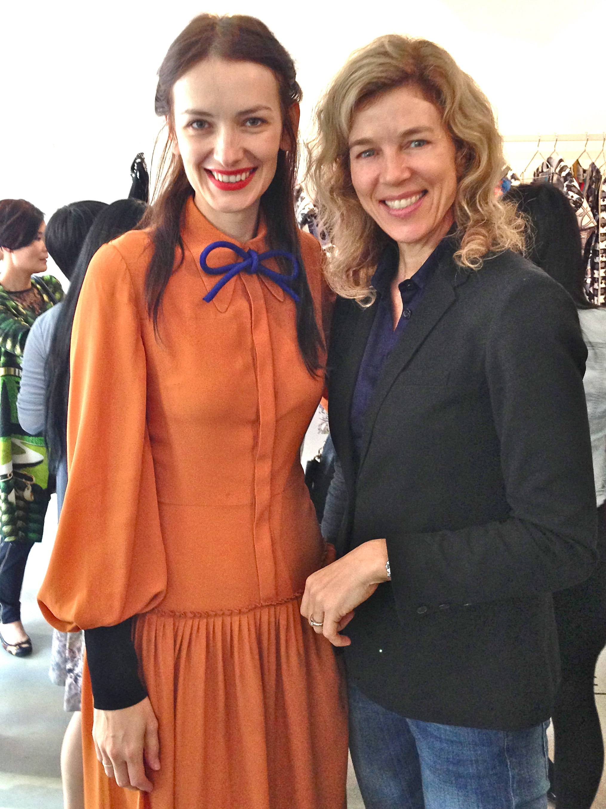 We loved Roksanda Ilincic’s flowing long skirts and dresses in a palette of blues and oranges, a bit of colour blocking and a touch of nostalgic Slavic folklore. The lovely, willowy Serbian-born designer cut a dramatic figure in a long sugar-sweet prim schoolgirl number on the day we met her.