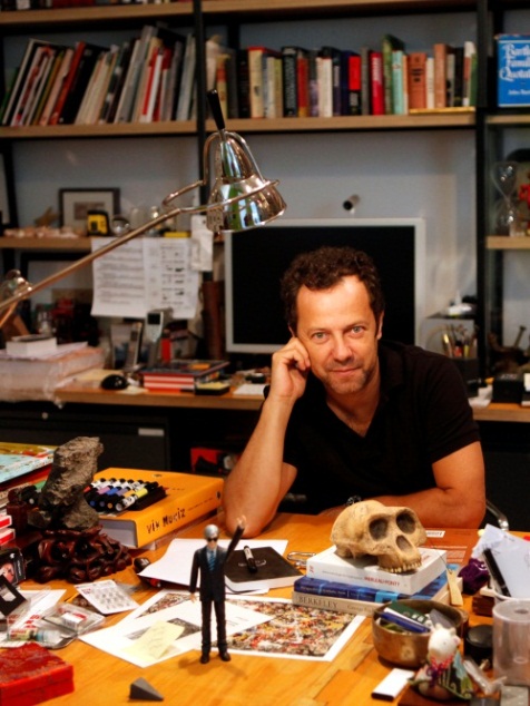 Dressed in trainers and a grey suit, he looks much younger than his 51 years and radiates a positivity and a contagious passion. Like his works, he is a wealth of information, revealing layer after layer of anecdote and reference.