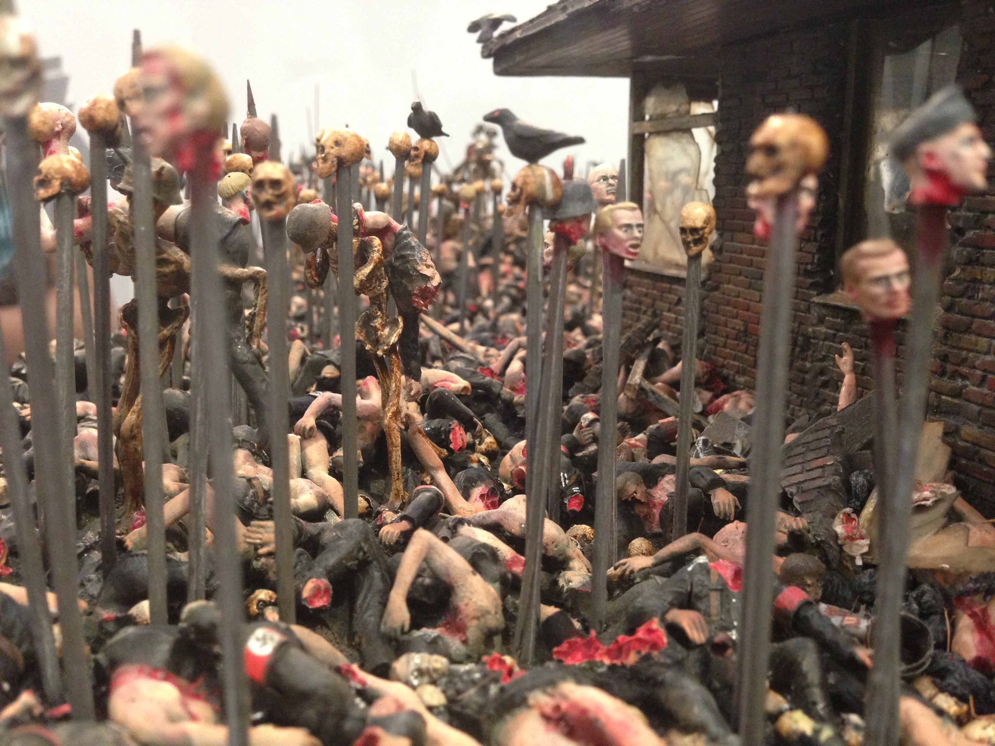 I dropped by Whitecube to check out Jake and Dinos Chapman‘s latest offering of tiny Nazis, crucified Ronald McDonalds, cannibals, zombies and defaced decrepit portraits of Dorian Gray. “Are you shocked? Is it controversial?” I asked one visitor. “No, it’s just put me off my cheeseburgers,” was the answer. Ahh, contemporary art. Nothing is sacred, nothing shocks anymore.