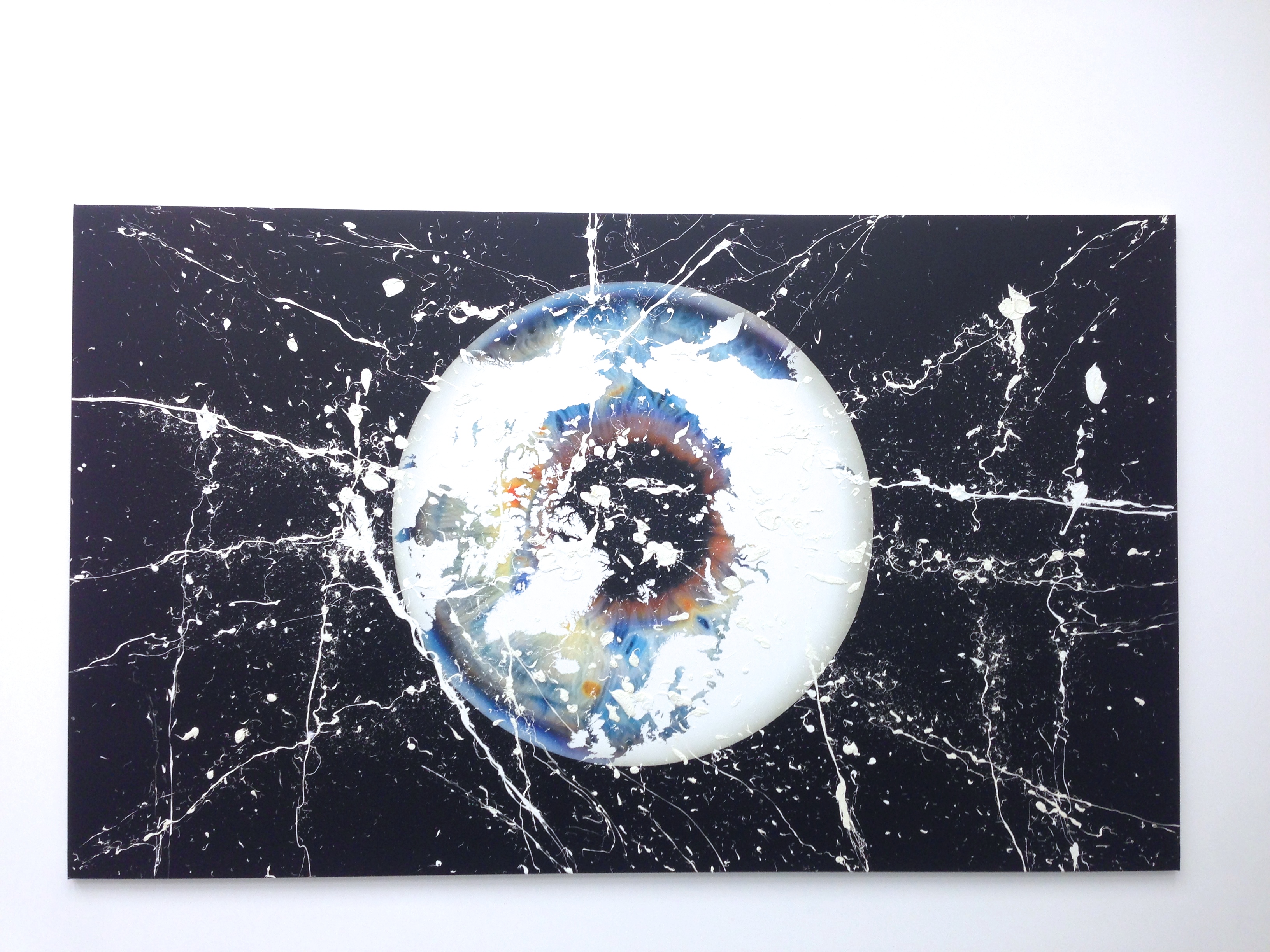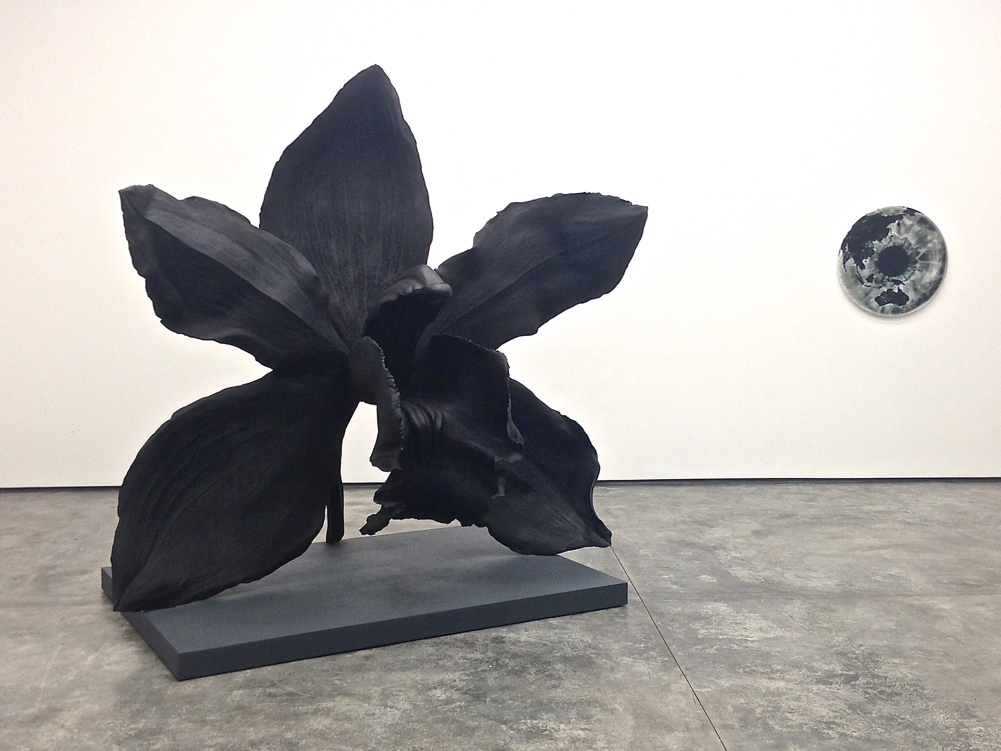 Quinn’s more familiar flower works are also littered about the gallery. There’s one of his giant bronze flower sculptures, ‘Stealth Desire’, 2013, a beautiful black polished orchid, so delicate and fragile and at the same time sexual resembling the female reproductive system (I was assured that this one was indeed sexual). A smaller one sits under a delicate glass dome, like a memento mori curiosity. And in the exhibition room at the back of the gallery hangs one of Quinn’s colourful hyper-realist sensual and lush flower paintings, “porn pictures your mum can look at.” There’s an object of desire for everyone in this show.