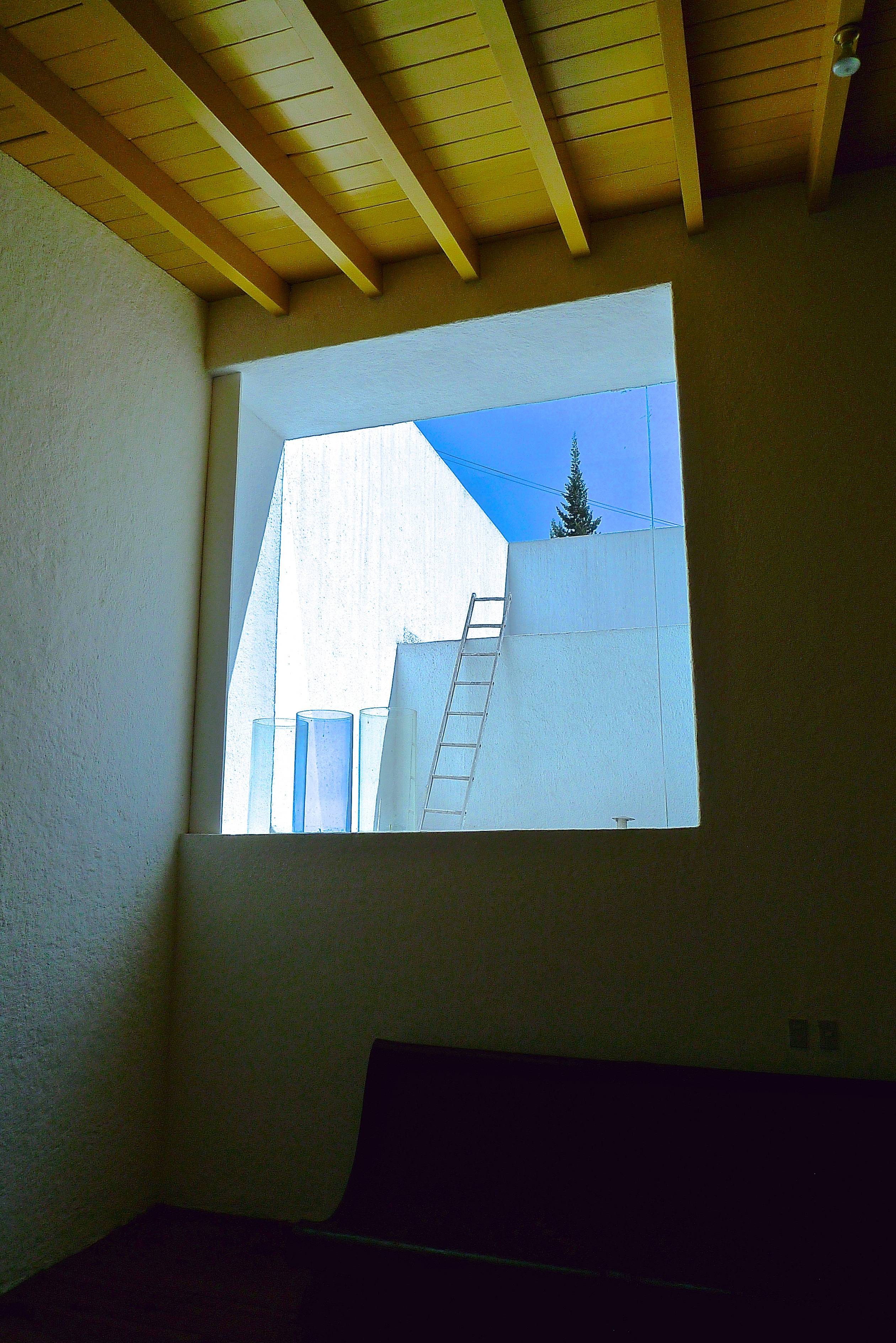 The rooftop, consisting of yet more planes of colour, is completely devoid of furniture or decorative objects. Against a pink wall a cascade of green vines tumbles down from an overhanging tree. This is where Barragán came to seek spiritual communion and be closer to God. It was intended as a place for meditation and spiritual contemplation, bathed in light, immersed in nature, yet completely cut off from the noise of the outside world. The house is a calm hidden oasis in a middle of a bustling, chaotic city of some 21 million people.