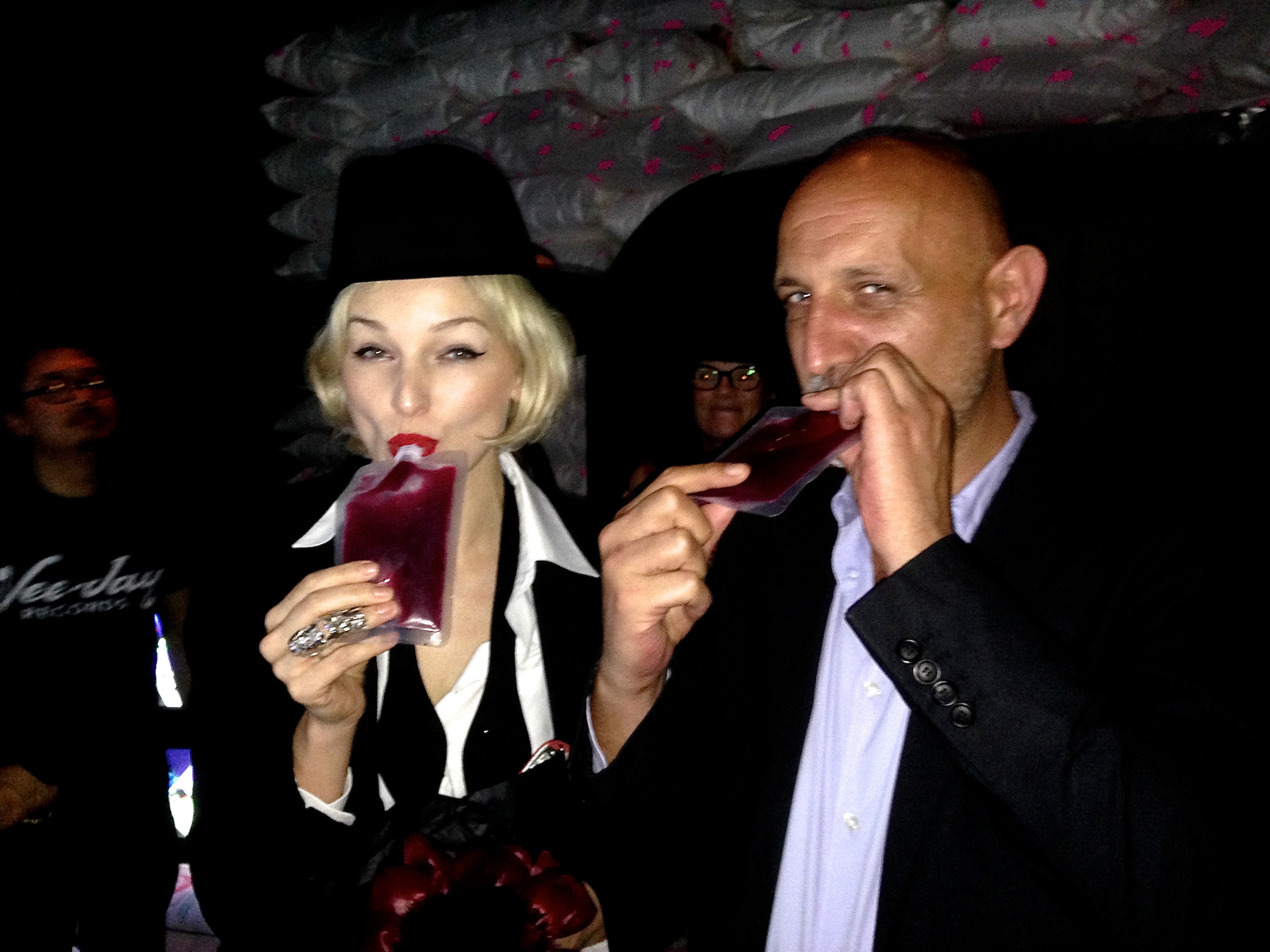 The vernissage after-party seemed to be all about the Absolut Art Bar. Hong Kong artist Nadim Abbas created ‘Apocalypse Postponed’, an apocalyptic bunker complete with sandbags and zombie mixologists where guests sipped red vodka cocktails from bloodbags. Queues snaked around the block with some party-goers waiting up to an hour in the humidity and heat outside to be let in to the already packed space for a night of music and entertainment organised by the Bearded Lady team.