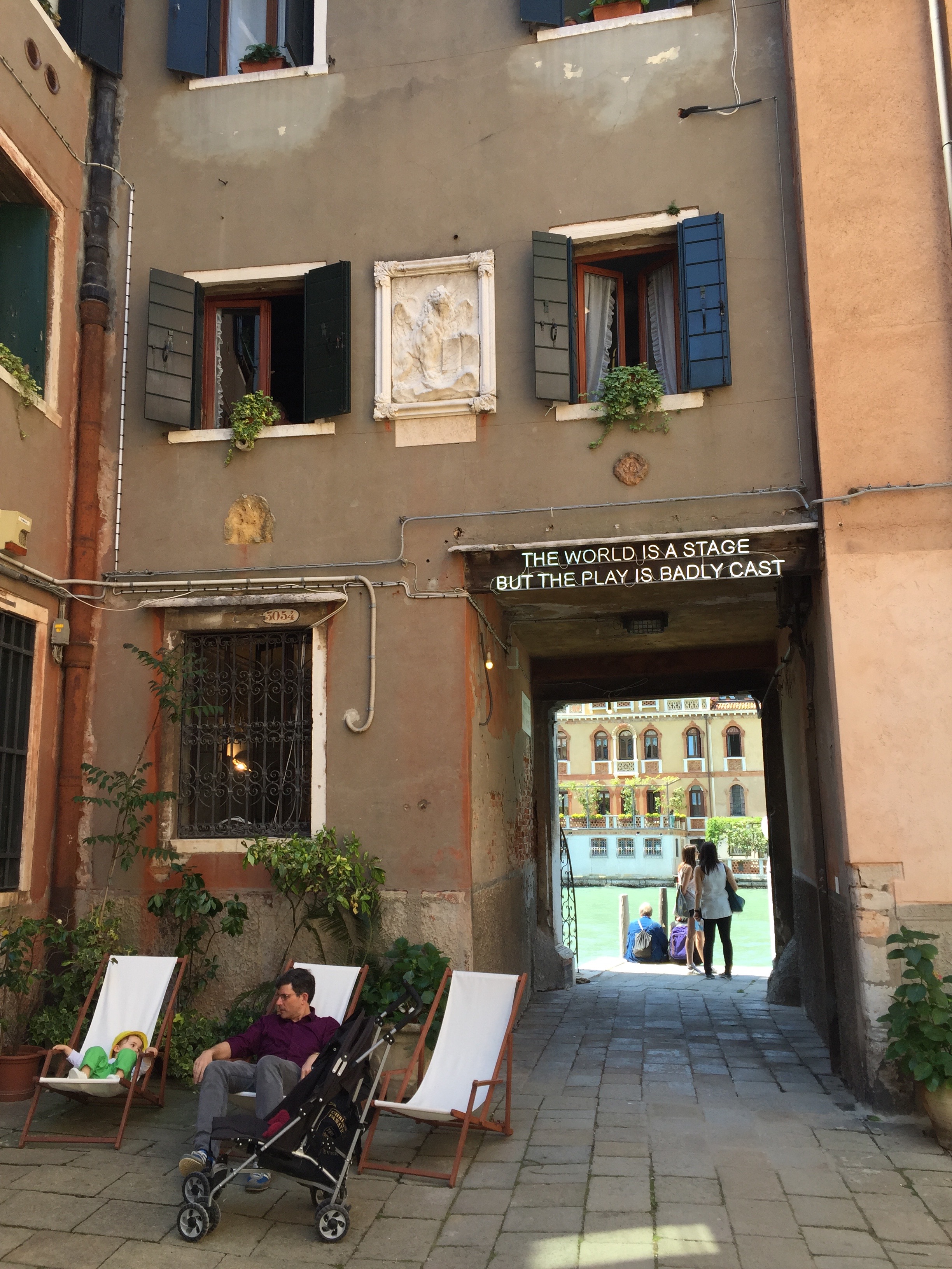 My week kicked off on Tuesday evening, fresh off the boat, with a palazzo party thrown by Hauser & Wirth and hosted by Achille Mauri in honour of his late brother, Italian artist Fabio Mauri whose work was featured in the Central Pavilion. Guests were entertained by the sleight of hand of Eddie the magician, a friend of Russian President Vladimir Putin apparently, who could make guests’ jewellery (including my wedding ring) and money disappear and reappear. The question “Can you make Vladimir Putin disappear?” was met with stony silence from Eddie, awkward laughter from a few, and guests nervously glancing over their shoulders.