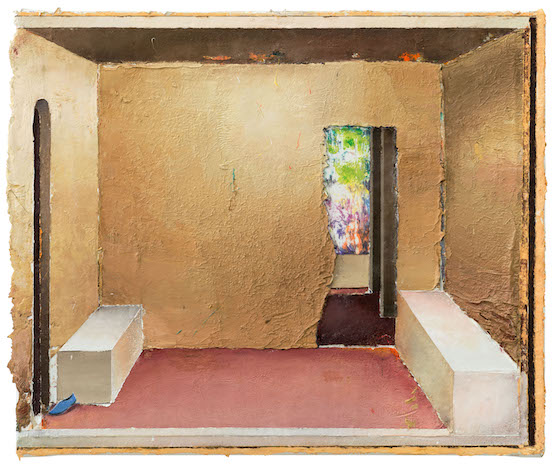 I’m focusing more on … it’s not so full of stuff. It’s more reduced—three walls, a ceiling and a floor, and two objects left and right. It’s complete. I’m really interested in the pure space and the empty quality of the walls. My pleasure is imagining that you can walk through the door, through the space.