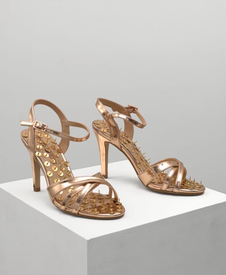 A sculpture featuring a pair of gold sandals (‘Untitled’) embedded with upturned drawing pins, is presented on a plinth. The shoes look like a sadistic trophy. Recontextualised, stripped of their original function (as wearable shoes) and placed on a pedestal, they are presented as desirable, luxury objects, totems and fetish objects to be admired, or worshipped. Similarly recontextualised and rendered un-useable are the two white vintage telephones with receiver cord connected together like an umbilical cord, and placed on a pedestal like artefacts from a bygone era (which they are).