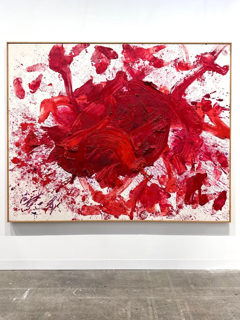 New York gallery Fergus McCaffrey, had a booth of textural, gestural, painted eye-candy, featuring a visceral, red painting by Gutai artist, Kazuo Shiraga (which sold for $5 million), as well as pink and lavender-pigmented, abstract, oil on paper and canvas paintings by Viennese artist, Martha Jungwirth. David Zwirner Gallery also hooked a seven figure sale, placing a portrait painting of French New Wave filmmaker, Francois Truffaut, by Elizabeth Peyton (Truffaut, 2005) for $2.2 million with a museum in China.