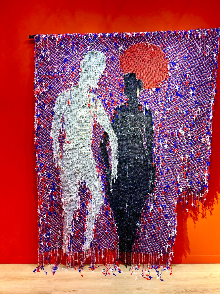 Spread out across two floors of the packed Hong Kong Convention and Exhibition Centre, this year’s Art Basel edition welcomed 177 galleries (down from its peak of almost 250) from more than 30 countries, including first time exhibitions from 22 galleries such as Yiri Arts from Taipei; Loevenbruck from Paris; Gallery Vacancy from Shanghai; and Retro Africa from Abuja, Nigeria. The gallery brought a series of wonderfully bold, rosary-bead tapestry artworks by Nigerian-American writer and artist, Victor Ehikhamenor, that fuse African cultural heritage with the postcolonial politics of the artist’s homeland.