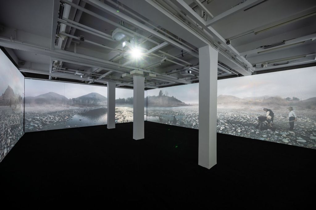 In GOLD_LEAD_WOOD_COAL (2024), presented across all four walls of Tai Kwun‘s F Hall Studio, Lisa Reihana weaves Aotearoa New Zealand and Hong Kong history together with fiction, connecting the past to the present. The artist takes the tragic story of the British cargo steamship SS Ventnor, wrecked off the coast of New Zealand in 1902, as the starting point to explore themes of foreign labour, migration, displacement, and belonging.